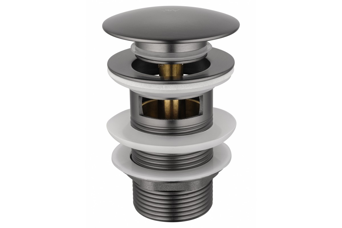 Донный клапан для раковины Wonzon & Woghand WW-88SS01-BGM с переливом 1 1/4, темный графит