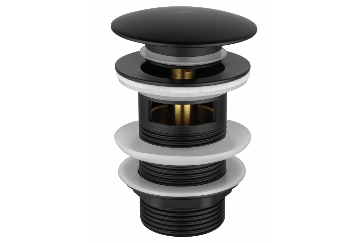 Донный клапан для раковины Wonzon & Woghand WW-88SS01-MB с переливом 1 1/4, черный/матовый