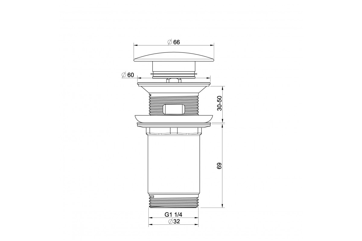 Донный клапан для раковины Wonzon & Woghand WW-88SS09-BGM с переливом 1 1/4, темный графит
