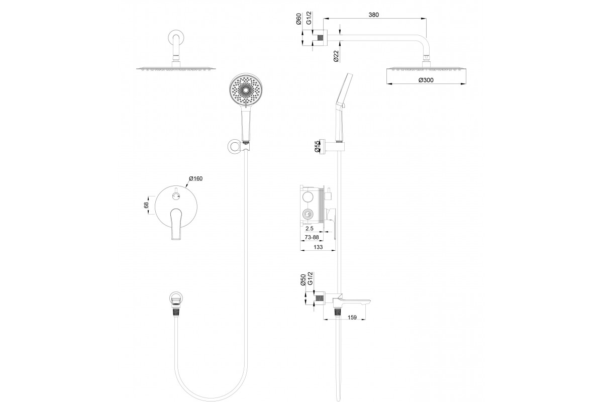 Душевая система Wonzon & Woghand Brilliant WW-88939079-MB встраиваемая, черный/матовый