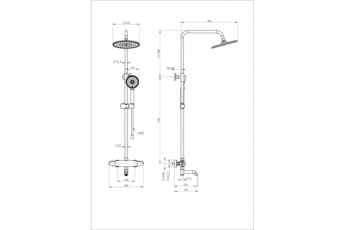 Душевая система Wonzon & Woghand Capsule WW-B3031-A3-BGG с термостатом, темный графит