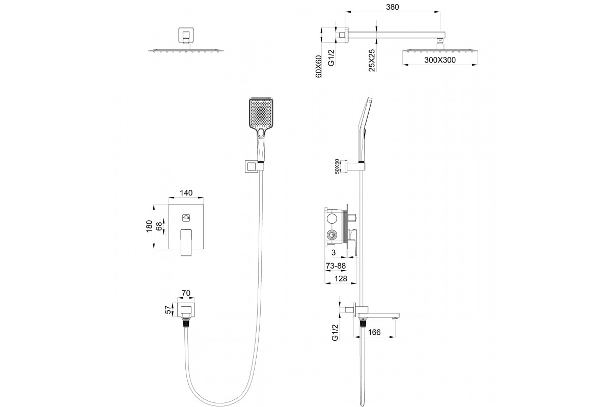 Душевая система Wonzon & Woghand Cube 2.0 WW-88939068-BGM встраиваемая, темный графит