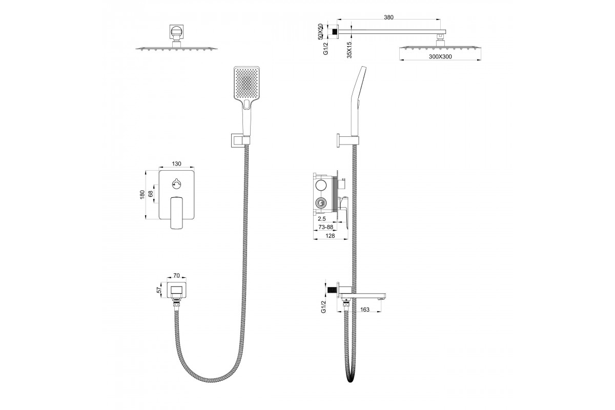 Душевая система Wonzon & Woghand Edge WW-88939003-BG встраиваемая, брашированное золото