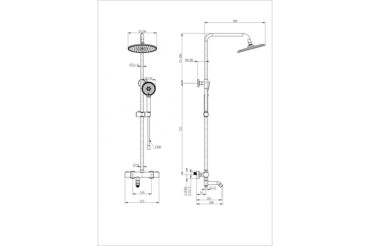 Душевая система Wonzon & Woghand INN 4 WW-B3047-A1-CR с термостатом, хром
