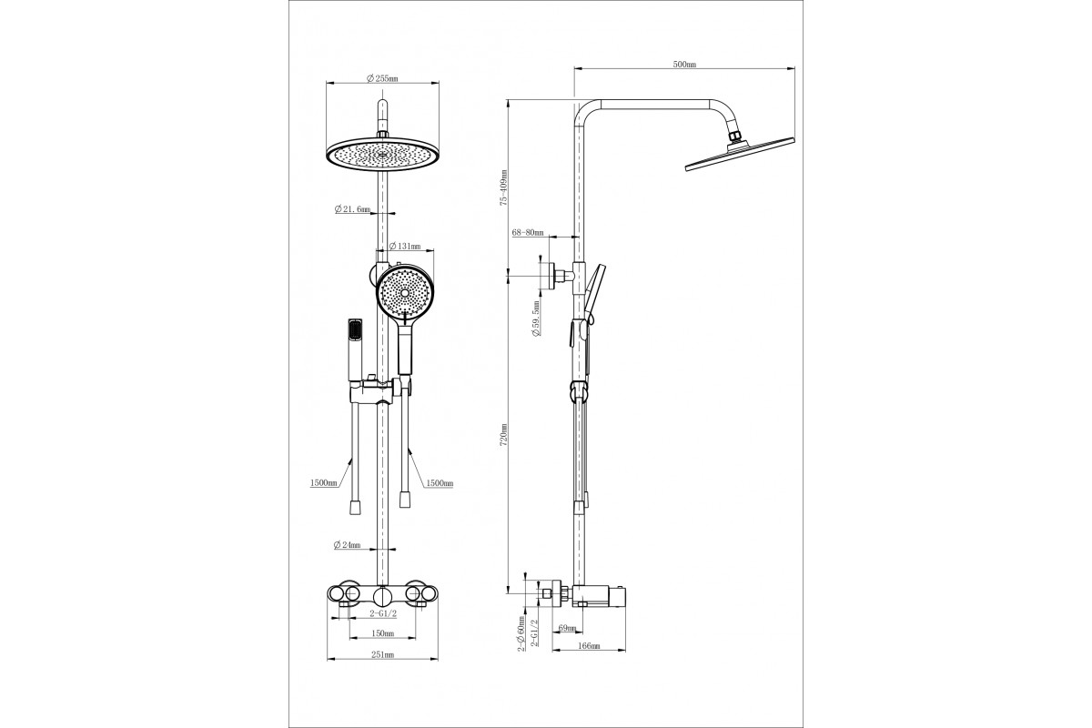 Душевая система Wonzon & Woghand Neo WW-B3035-A-CR с термостатом, хром