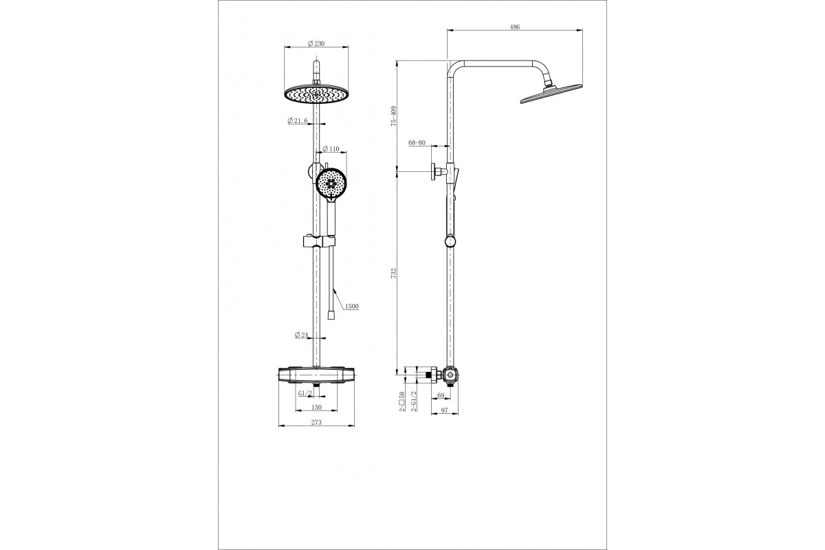 Душевая система Wonzon & Woghand Neo WW-B3035-A-CR с термостатом, хром