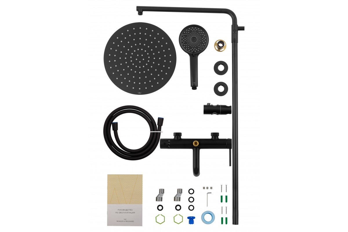 Душевая система Wonzon & Woghand Stick WW-88739903-MB с термостатом, черный/матовый