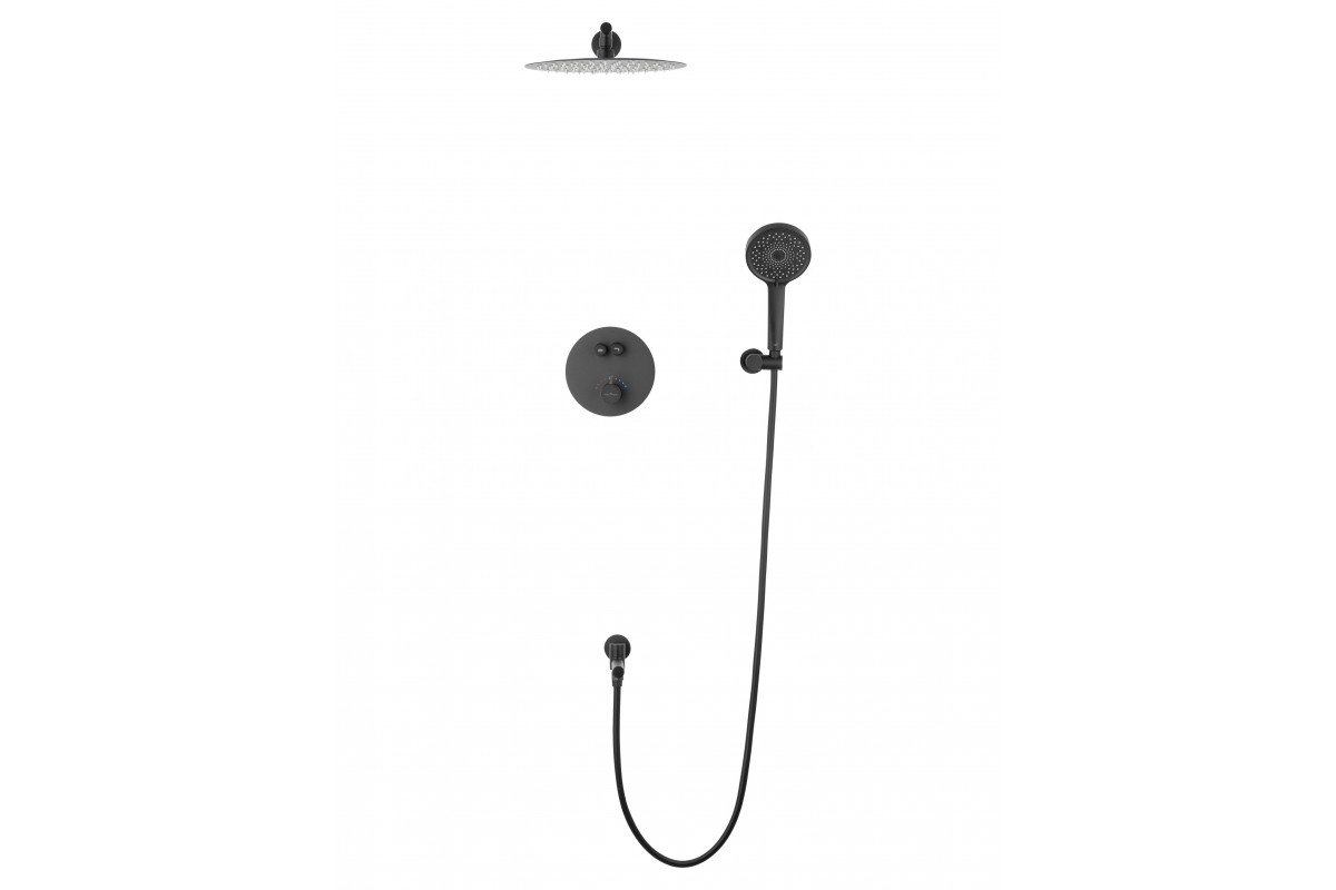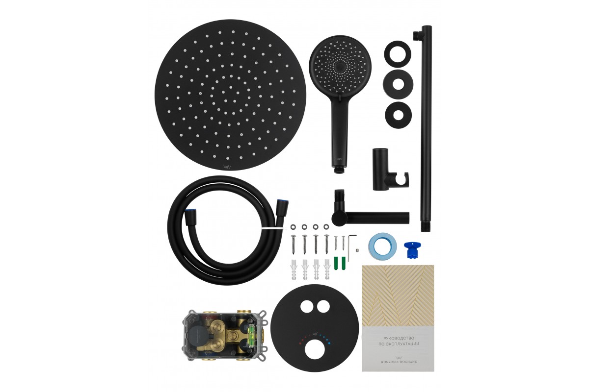 Душевая система Wonzon & Woghand Stick WW-88929010-MB встраиваемая с термостатом, черный/матовый