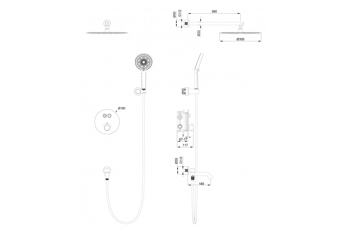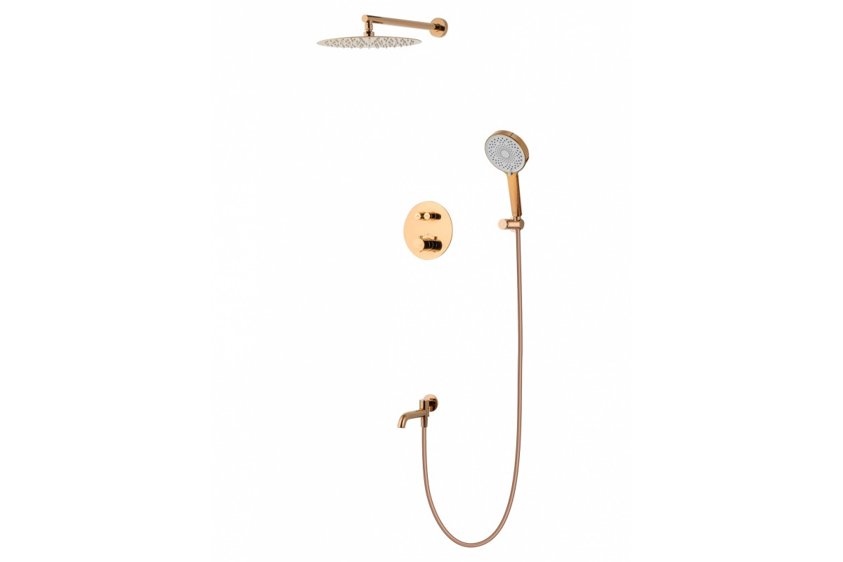 Душевая система Wonzon & Woghand Stick WW-88929010-RG встраиваемая с термостатом, розовое золото