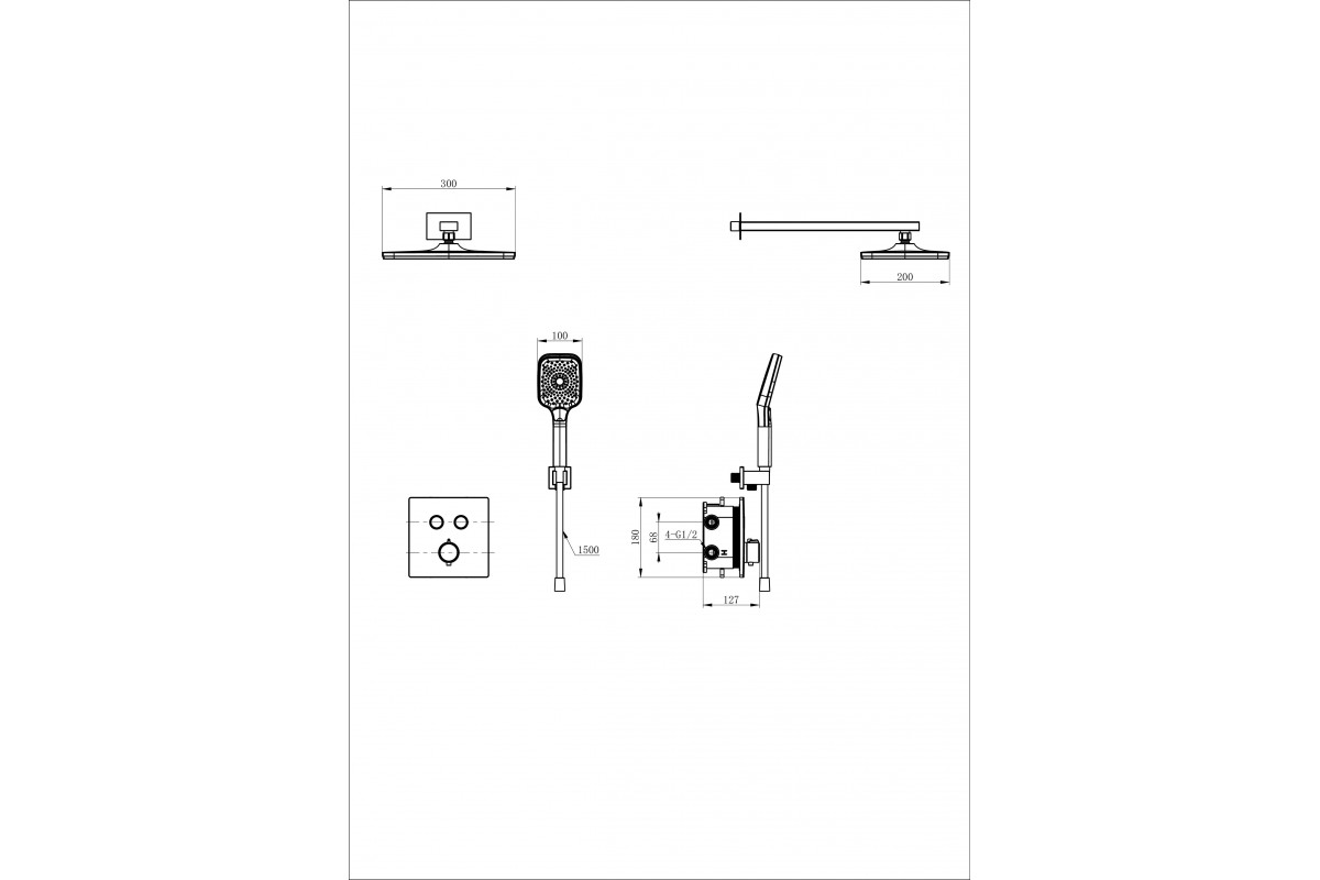 Душевая система Wonzon & Woghand WW-D2017-B-MW встраиваемая с термостатом, белый/матовый