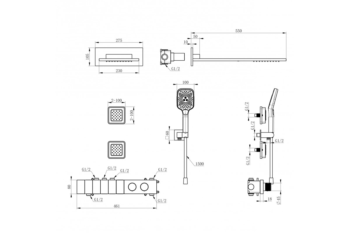 Душевая система Wonzon & Woghand WW-D4538-A-CR встраиваемая с термостатом, хром