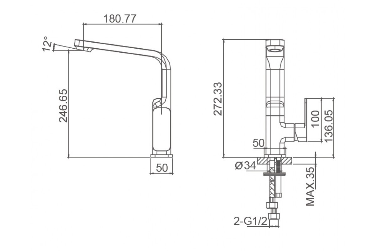 Смеситель Wonzon & Woghand Arnie WW-692102-CR для кухонной мойки, хром