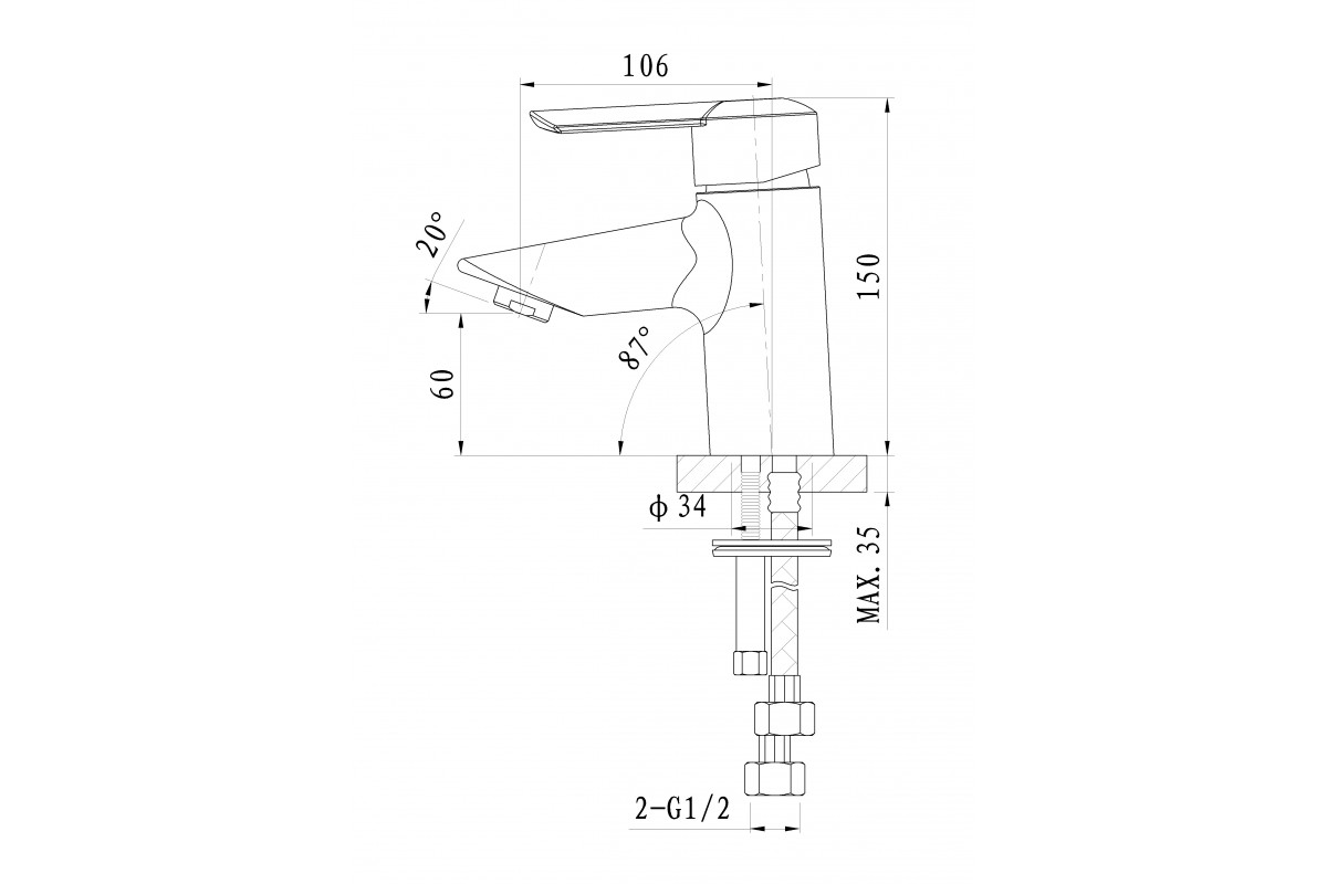 Смеситель Wonzon & Woghand Baroque WW-191104-CR для раковины, хром