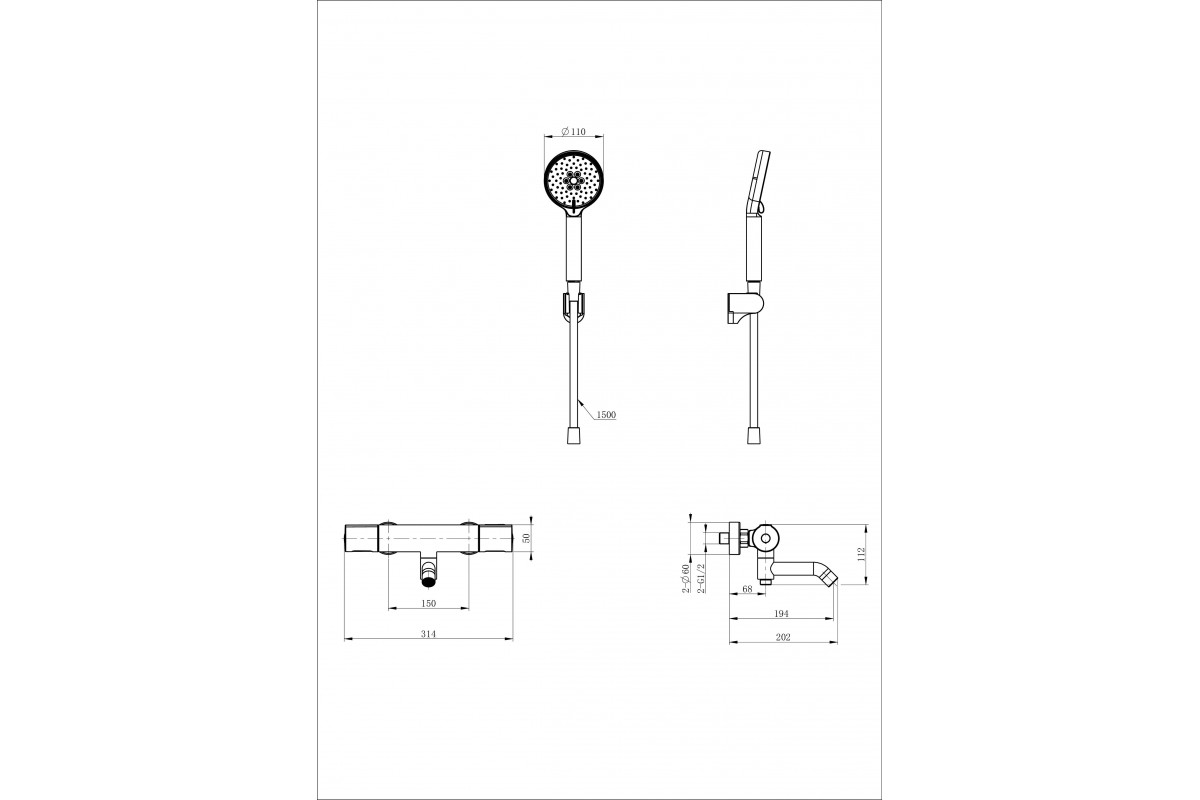 Смеситель Wonzon & Woghand INN 2 WW-A2006-A-MW для душа с термостатом, белый/матовый