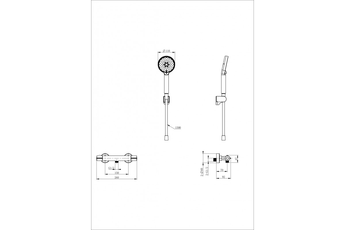 Смеситель Wonzon & Woghand INN 5 WW-B2063-A-CR для душа с термостатом, хром